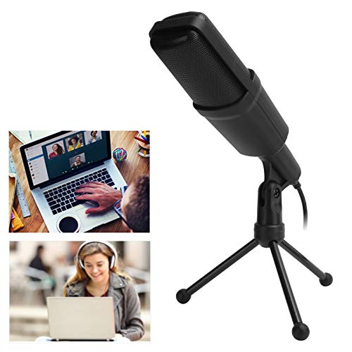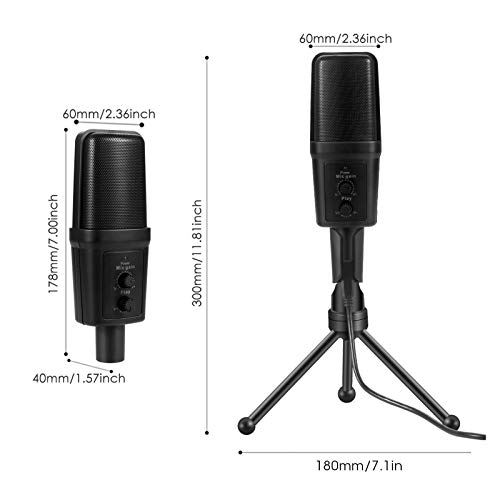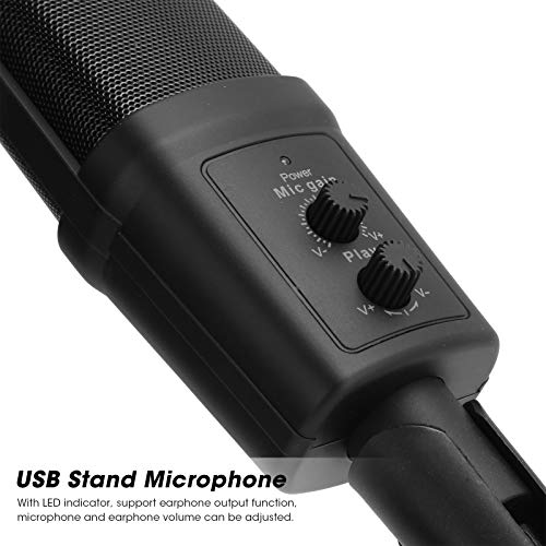 Microfono USB, Microfono cablato a condensatore cardioide Point Scheda Audio incorporata con indicatore LED su Supporto Regolabile e Filtro Anti-Pop Microfoni da Tavolo Pieghevoli(Nero)