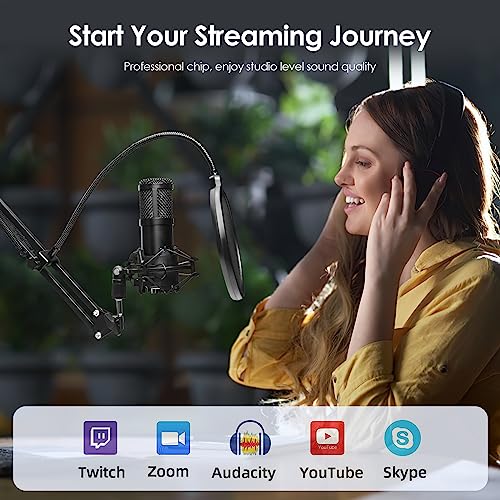 Microfono USB a Condensatore Kit 192KHZ/24BIT, Plug & Play per Registrazione, Computer PC, Podcast, YouTube, Twitch, con Filtro Antipop, Supporto Regolabile, Ragno Anti Shock, Filtro Anti-Vento