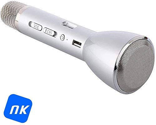 NK - Microfono karaoke portatile con Bluetooth e altoparlante, alimentazione 3W, 10 misuratori Bluetooth, Android e iOS, colore argento