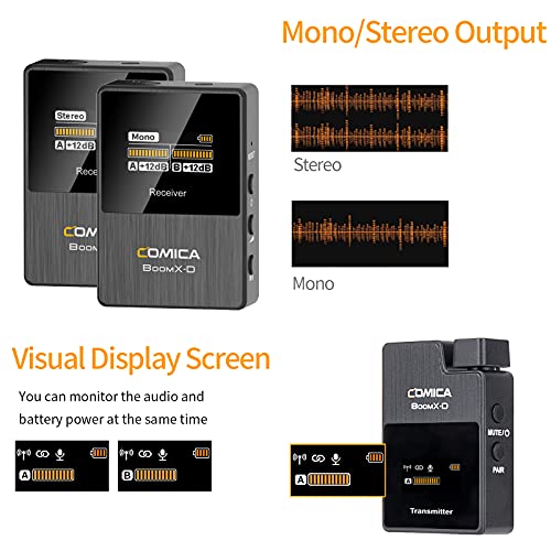 ✈Microfono wireless lavalier digitale 2.4G: il microfono da bavero Comica BoomX-D D2 adotta la tecnologia wireless avanzata 2.4G. Può regolare automaticamente la frequenza quando la frequenza è disturbata e offre un ottimo effetto anti-interferenza.La distanza di lavoro può fino a 50 m garantisce operazioni fluide e registrazione senza staccato.