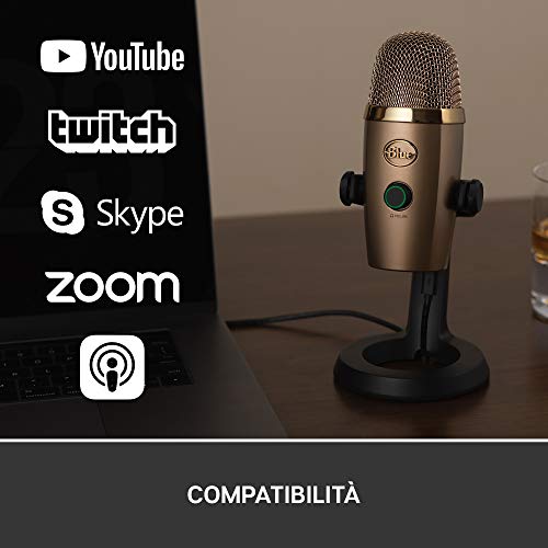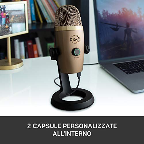 Blue Yeti Nano Microfono USB Premium per Registrazione, Streaming, Gaming, Podcast su PC e Mac, Mic a Condensatore, Effetti Blue VO!CE, Cardioide e Omni, Monitoraggio Senza Latenza - Oro