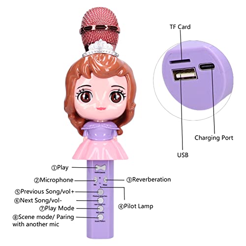 Microfono Principessa Karoke, Giocattoli per Karaoke per Bambini, Microfoni Palmari Wireless per Karaoke Giocattoli Regalo di Compleanno per Ragazze e Ragazzi di 4 5 6 7 8 Anni, per Partito