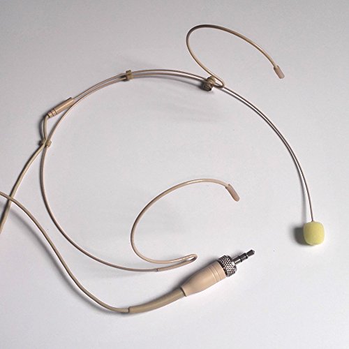 Microfono professionale omnidirezionale, a cerchietto con ganci per le orecchie, per trasmettitore wireless da tasca AKG/Shure/Sennheiser, colore: beige