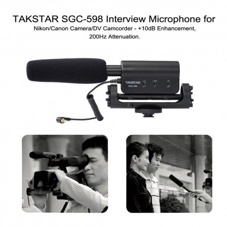 Microfono TAKSTAR SGC-598 intervista per Nikon/Canon fotocamera/videocamera - + 10dB Enhancement, 200Hz attenuazione.
