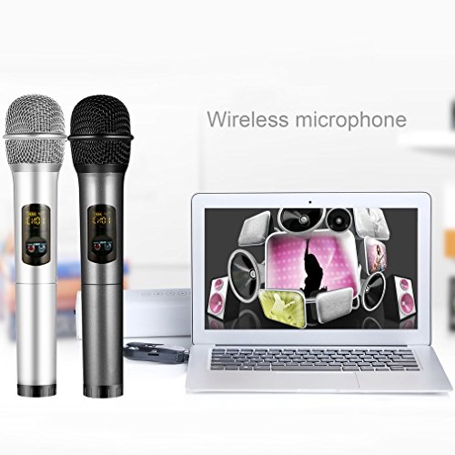 Microfono Wireless LESHP Professionale Bluetooth Microfono Portatile per Conferenze, Karaoke, Banchetti, Feste, Partito ecc (nero e grigio)