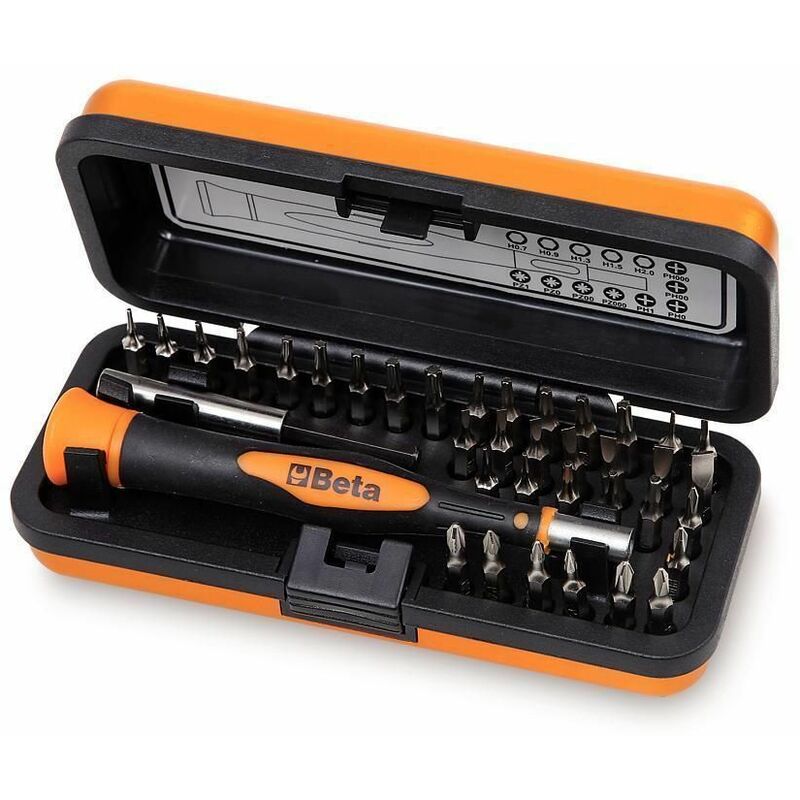 Beta 1256/C36-2 - Set Mini Cacciaviti Professionali 36 Inserti, Mini Cacciaviti di Precisione, Microgiravite con Inserti Intercambiabili 36 inserti intercambiabili da 4 mm e una prolunga magnetica Beta 1256/C36-2 - Set Mini Cacciaviti Professionali 36 Inserti, Mini Cacciaviti di Precisione, Microgiravite con Inserti Intercambiabili Set che comprende un mini cacciavite bimateriale, 36 inserti intercambiabili da 4 mm e una prolunga magnetica Ideale per una grande varietà di viti, uno strumento perfetto per professionisti e per appassionati di lavori fai-da-te I processi produttivi beta sono conformi agli standard del sistema di qualità iso 9001, certificazione che accompagna il prodotto dalla materia prima fino alla fase di assistenza post-vendita Viene inclusa anche una custodia per facilitare il trasporto. Prodotti inclusi: 1256tx inserti torx t3 - t4 -t5 - t6 - t7 - t8 - t9 - t10 - t15 1256rtx inserti torx con foro centrale t6 - t7 - t8 - t9 - t10 1256lp inserti lama piatta 0, 8 - 1