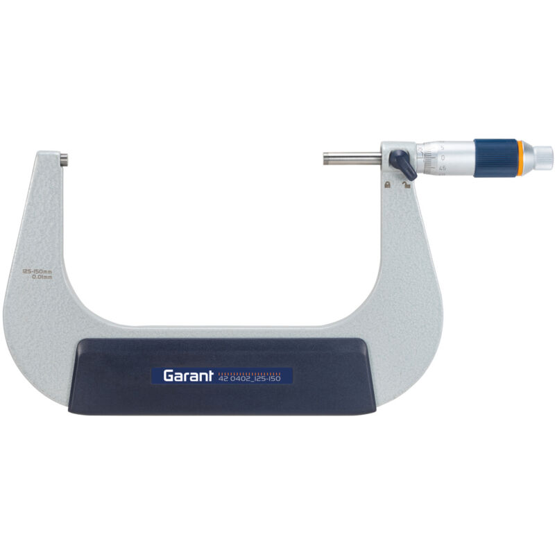 Superfici di contatto in metallo duro, finemente lappate. Stelo temprato e rettificato. Bloccaggio dello stelo a levetta. Con frizione e rivestimento dell'arco isolanti. Tamburo graduato in esecuzione cromata antiriflesso. Con tacche e cifre incise in nero, di facile lettura. Con frizione ad alta sensibilità combinata per utilizzo con una sola mano o su supporto. Fornitura: A partire da Dim. 25-50 inclusa 1 asta di regolazione. Dati tecnici Frizione sensitiva sì Imballaggio Custodia rigida Metrologia analogico Tipo di prodotto Micrometro Intervallo di misurazione, mm 125 - 150 Norma DIN 863 Risoluzione, mm 0,01 Taratura B2 Scala tamburo graduato, mm 1/50 ⌀ Tamburo graduato, mm 19 ⌀ Stelo, mm 6,5 Numero di aste di regolazione 1