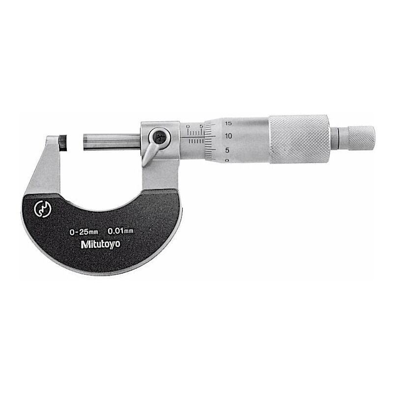 Superfici di contatto in metallo duro, finemente lappate. Stelo temprato e rettificato. Bloccaggio dello stelo a levetta. Con frizione e rivestimento dell'arco isolanti. Con tacche e cifre incise in nero, di facile lettura. A partire da Dim. 100-125, con arco in ghisa verniciata. Fornitura: A partire da Dim. 25-50 inclusa 1 asta di regolazione. Dati tecnici Imballaggio Custodia rigida Metrologia analogico Tipo di prodotto Micrometro Limite di errore, µm 3 Intervallo di misurazione, mm 125 - 150 Norma DIN 863 Risoluzione, mm 0,01 Taratura B2 Esecuzione superficie di contatto Con riporto in metallo duro Passo vite angolare, mm 1/50 Scala tamburo graduato, mm 1/50 ⌀ Tamburo graduato, mm 18 ⌀ Stelo, mm 6,35