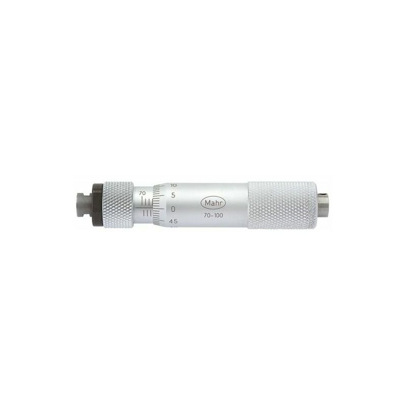Struttura tubolare leggera e resistente a pressoflessione. Stelo interamente temprato e rettificato. Superfici di contatto temprate e lappate. Elementi di comando e lettura in esecuzione cromata opaca. Dal campo di misura 100 − 125 mm viene fornito con isolamento termico e dispositivo di fissaggio. Fornitura: Micrometro. Dati tecnici Taratura B10 Scala tamburo graduato mm 1/50 Norma DIN 863 Metrologia analogico Tipo di prodotto Micrometro per interni a 2 punte Lettura, mm 0,01 Limite di errore, µm 6 Intervallo di misurazione, mm 100 - 125 ⌀ Tamburo graduato, mm 20 ⌀ Stelo, mm 8