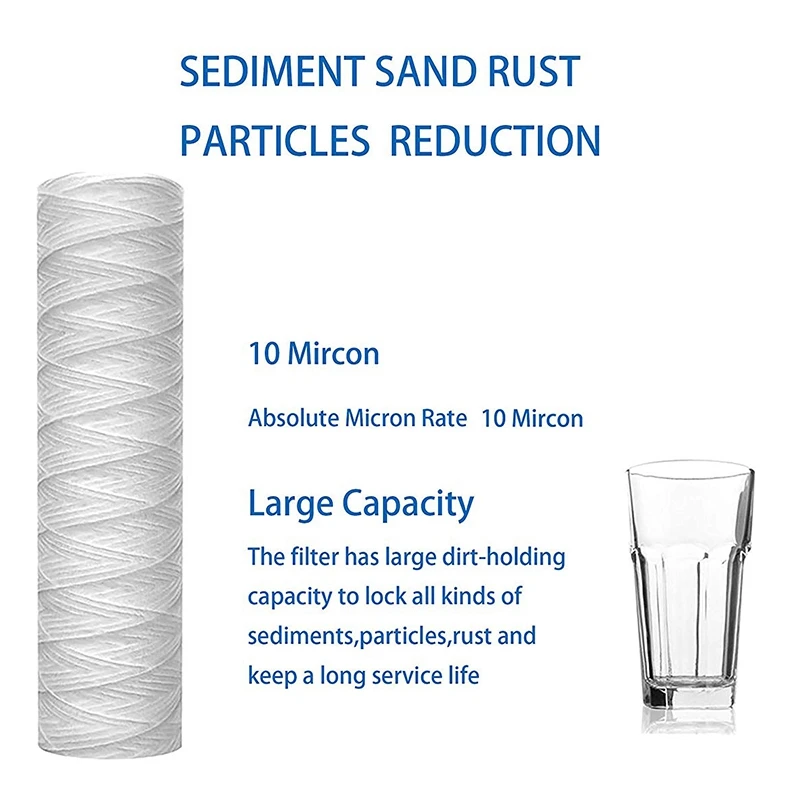 SANQ 10 Micron 10 Inch x 2.5 Inch String Wound Sediment Water Filter Cartridge Whole House Sediment Filtration, Universal Replac