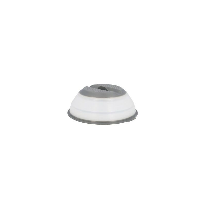Tapa microondas vaporera escurrdior.-Apta como tapa de microondas, escurridor y vaporera.-Libre de BPA.-Plegable, lo que permita ahorrar espacio.-Medidas: 26 x 26 x 9 cm.