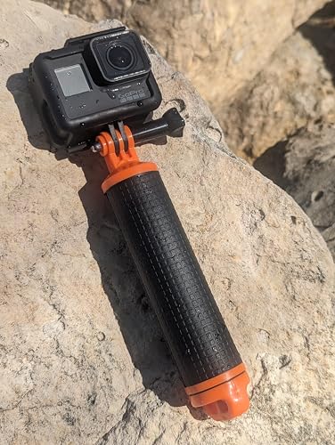 La punta arancione dell'asta rende la fotocamera ben visibile nel caso in cui cada durante gli sport acquatici. Cinturino da polso regolabile e moschettone incluso.