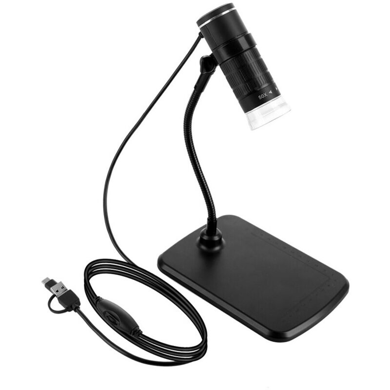 Specifiche: Tipo: microscopio digitale Colore: nero Rapporto di ingrandimento: 50X-1000X Risoluzione: 1080P Interfaccia: Type-C+Micro USB+USB Lista di imballaggio: 1 * Microscopio