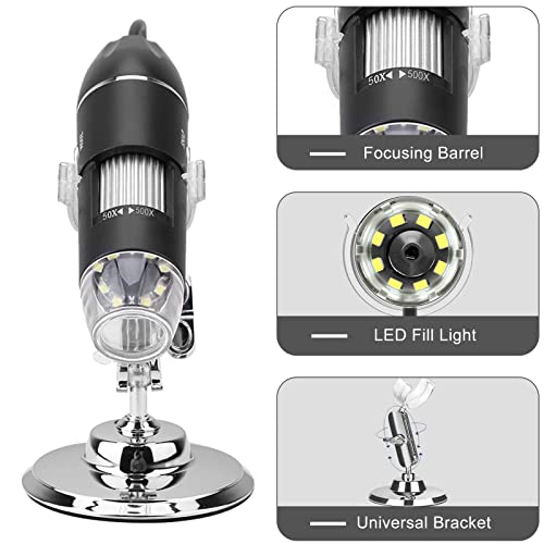 Microscopio digitale, microscopio elettronico USB 50X-500X, microscopio elettronico professionale,Microscopio LED, ingranditore USB 0.3MP per computer con supporto