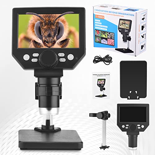 Microscopio Digitale,Kacsoo microscopio professionale 4.3 Pollici 10 Milioni di Pixel,Supporta la Scheda di 64G,Microscopio LCD con 8 LED Di Luce,Compatibile con Windows e MacOS,Supporta 16 lingue