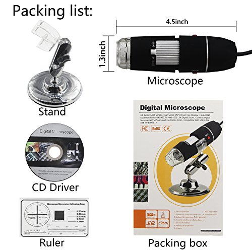 Microscopio digitale, SOSENSE da 0 a 1600x Endoscopio ingrandimento, 2MP 8 LED USB 2.0 e microscopio digitale micro, Mini fotocamera con supporto, compatibile con Mac Window 7 8 10 Android Linux