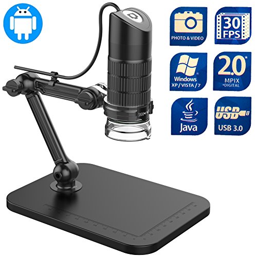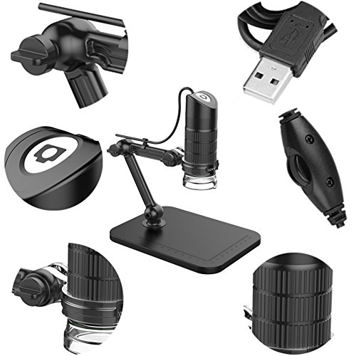 Microscopio digitale, Yupro da 20X a 1000X Microscopio USB da 8 MP a 2 pin con supporto di osservazione a braccio flessibile, videocamera, per Android / Windows