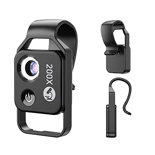 Microscopio con obiettivo per telefono portatile compatto e flessibile regolabile e clip su HD 200x compatibile con tutti gli smartphone,con polarizzatore CPL+luce di riempimento a LED