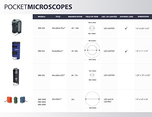 Microscopio tascabile 20x Carson MicroMini con torcia a LED e luce UV integrata - Verde