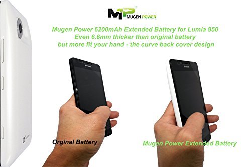 Microsoft Lumia 950 - Mugen Power 6200mAh Super esteso la batteria con la copertura posteriore (Bianco)