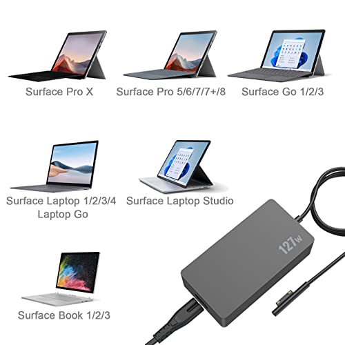 Per Microsoft Surface Book 3 2 Charger 127W, 15V 8A Surface Laptop Power Supply Compatible with Surface Laptop 4 3 2 1 Go 3, Surface Pro 8 7 7+ 6 5 X, Surface Laptop Studio