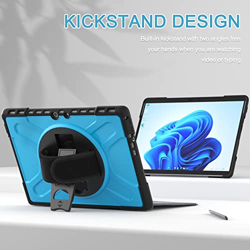 Per Microsoft Surface Pro 8 2021 Custodia da 13 pollici, guscio infrangibile tre in uno, a prova di caduta, antipolvere, antiurto, girevole a 360 gradi, blu
