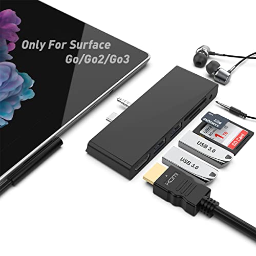 Espandere la porta di tipo C: estendere facilmente una porta USB C a 4K HDMI, 2 porte USB 3.0, 1 slot per schede SD, 1 slot per schede Micro SD/TF, 1 jack audio/cuffie da 3,5 mm. Specificamente progettata per Ms Surface Go, questa docking station Surface Go con superficie Go Edge Shape e si adatta perfettamente. Non deve essere sciolto.