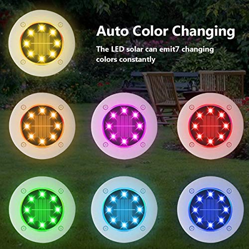 ✨Versione Aggiornata:Ogni luce solare a terra accende 8 LED, risparmio energetico e LED super luminoso, integrati nell'efficiente pannello solare con batteria integrata da 600 mAh e può essere utilizzato per 8-10 ore,7 colori cambiano automaticamente.