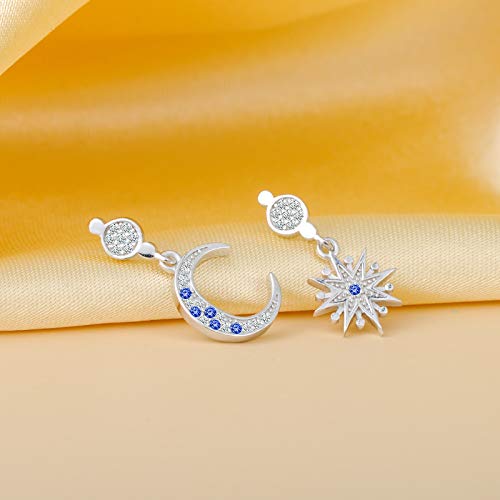 MICSAVI Argento 925 Orecchini Pendenti Stella e Luna Asimmetria, Orecchini Lunghi con Blu y Bianco Zirconi da Donna Ragazze