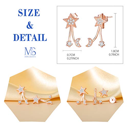 MICSAVI Orecchini Stelle e Luna Argento 925 con Zirconi Cubici, Oro Rosa Orecchini a Bottone, Orecchini Pendenti, Orecchini a Cerchio Stella Luna da Donna Ragazze
