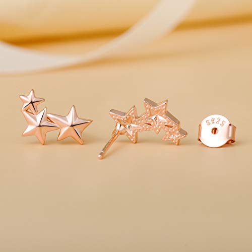 MICSAVI Orecchini Tre Stelle Argento 925, Orecchini Stelle Oro Rosa con Zirconi Cubici da Donna Ragazze