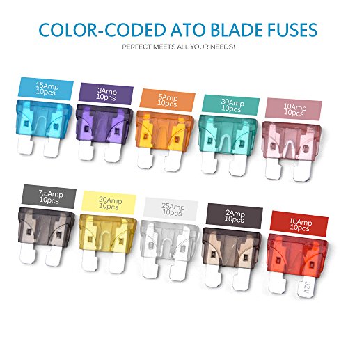 [soddisfano il tuo beduerfniss] - 100pcs, assortiti 10pcs totali di 2 a 3 a 5 a 7.5 a 10 a 15 a 20 a 25 a 30 a 35 a lama fusibili, ben prende la emergenze per vari dispositivi elettrici.