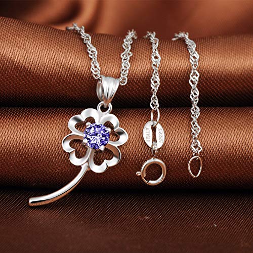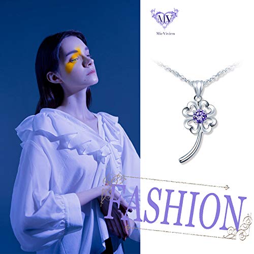MicVivien Collana da donna in argento sterling 925, Collana con pendente a forma di quadrifoglio fortunato con AAAA Zirconia cubica