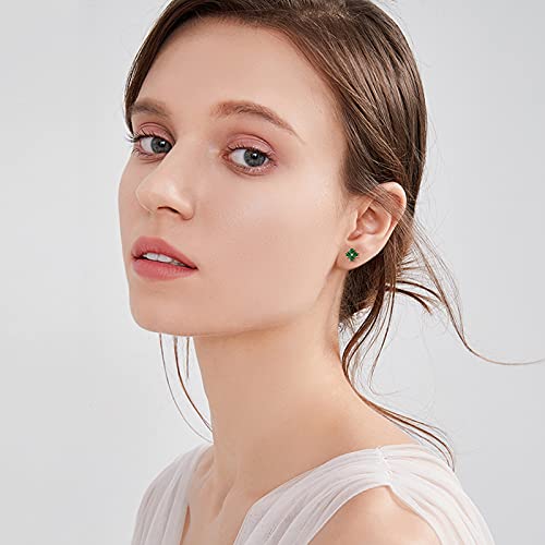 MicVivien Orecchini a Bottone Quadrifoglio con Verde Zirconi 925 Argento Sterling Orecchini a lobo Trifoglio Orecchini Brillante per Donna Ragazza