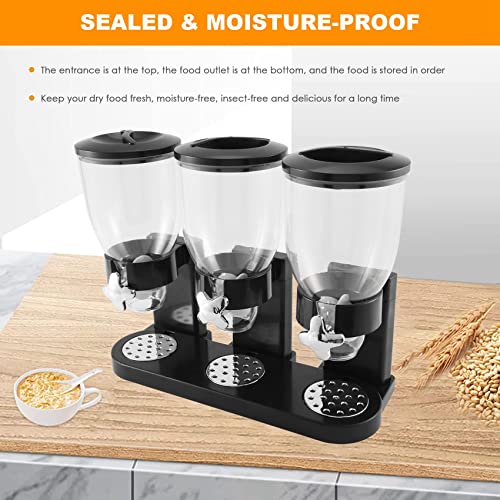 Micvtve Distributori per Cereali Dispenser Cibo Secco per Alimenti Secchi Triplo Contenitore per Contenitori Contenitore per Farina D'Avena nel Plastica Contenitore per Alimenti Nero