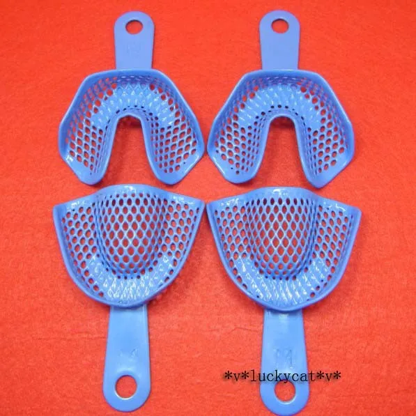 10 pcs Middle Size Blue Dental Plastic-Steel Impression Trays Autoclavable Denture Lab Instrument