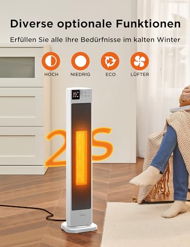 Midea NTH20-22GR(WH) Termoventilatore a risparmio energetico silenzioso con telecomando, PTC 2000 Watt, termoventilatore in ceramica con termostato, 2 livelli di riscaldamento, timer 24H, modalità