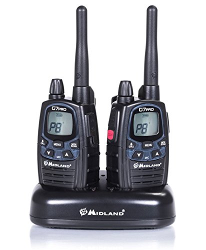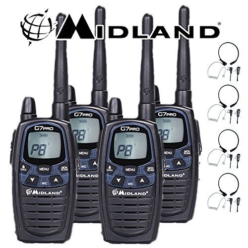 12Km Midland G7 PRO Dual-Band Lungo Raggio Doppia PMR 446 Licenza Gratuita Radio con Comtech CM-415TH PTT/VOX Laringofono Cuffie - Nero, Nero, Quad