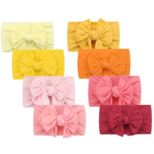 MiDoDo Fascia Capelli Bambina 8 Pezzi Fiocchi Fasce Capelli Neonata Elastica Fascia Neonata Capelli Morbido Fasce per Capelli Bambina Fasce Neonata 0-3 Anni per Capelli