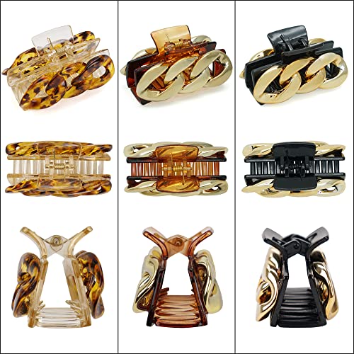 MiDoDo 3 Pezzi Mollettoni per Capelli Donna Grandi Clip per Capelli da Donna Antiscivolo Plastica Grande Pinze per Capelli con Catena d'Oro Clip con Artiglio Forte per Capelli per Donne Ragazze