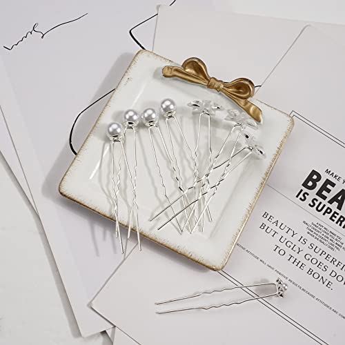 【 】Questo forcine capelli sposa strass sono realizzati in lega di alta qualità, perla, strass, queste spille per capelli di cristallo perla sono durevoli e robuste, non facile da rompere.