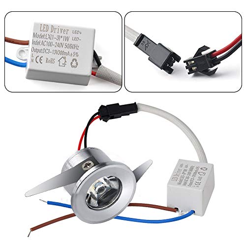 Midore Mini faretto LED da incasso 1 W, 10 faretti da incasso con trasformatore, piccoli faretti LED da soffitto per armadio/cucina/soggiorno