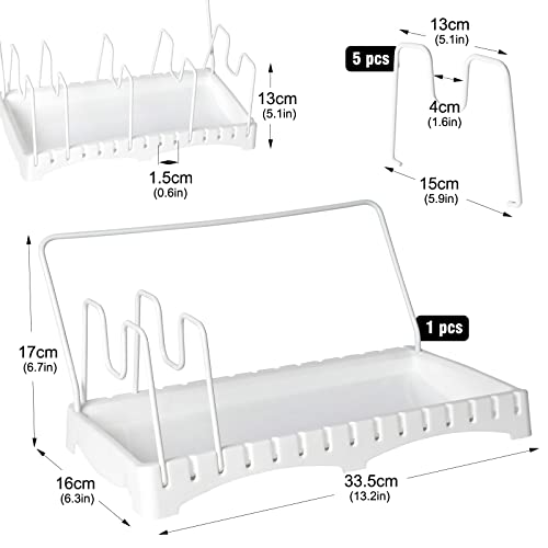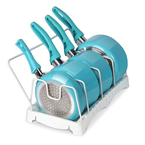 Midyb Porta padella per cassetto, porta coperchio con 5 scomparti regolabili, pentole e padelle, organizer in acciaio inox, colore: bianco