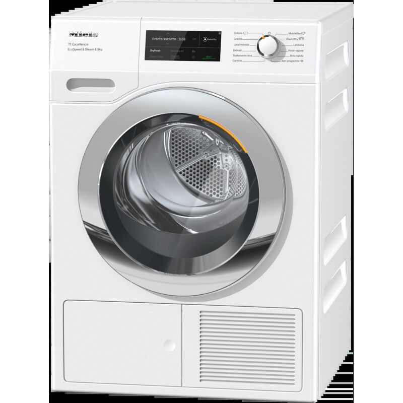 Se stai cercando un'asciugatrice che sia versatile, potente e facile da usare, l'Asciugatrice 9kg Miele TEL 795 WP è quella che fa per te. Questa asciugatrice a pompa di calore ti permette di asciugare in modo rapido e sano, grazie alla tecnologia SteamFinish che aggiunge il vapore al ciclo di asciugatura, eliminando gli odori e riducendo le pieghe. L'Asciugatrice 9kg Miele TEL 795 WP ha una capacità di 9 kg, ideale per asciugare i capi di tutta la famiglia. Ha una classe di efficienza energetica A+++, che ti consente di risparmiare energia e denaro. Ha anche la funzione EcoSpeed, che riduce la durata dei programmi e aumenta l'efficienza della pompa di calore. Con l'Asciugatrice 9kg Miele TEL 795 WP puoi scegliere tra 40 programmi automatici, che ti guidano nella scelta della funzione e del peso dei capi. Puoi anche impostare manualmente il tempo e la centrifuga, grazie al display LED. L'Asciugatrice 9kg Miele TEL 795 WP ha un design elegante e moderno, con una finitura in bianco loto