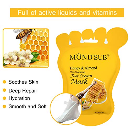 5 paia di Miele & Mandorle Nutriente piedi Maschere - mascherina del piede idratante per la pelle secca a Deep idratante e schiarente Idratare, riparazione ruvido danni alla pelle per le donne e gli