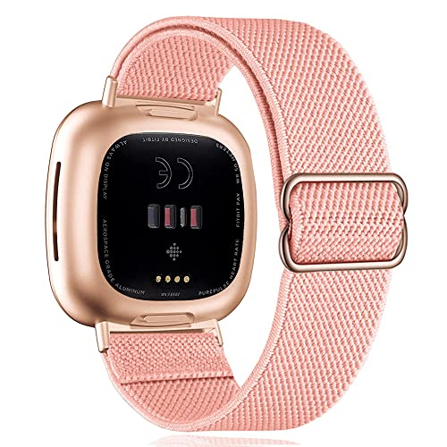 Migeec Cinturino per Fitbit Versa 3, Cinturino di Regolabile Sportivo in Nylon Elastico con Connettore in Metallo, Rosa