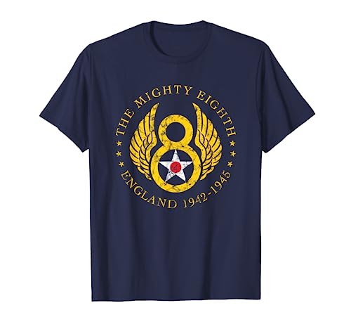 Mighty Eighth WW2 USAAF Distressed Design makes a great aviation gift for WWII Buffs, Plane Spotters, B-17 & B-24 Lovers, Veterans, Avgeeks, Second World War Airplane Model Kit Builders, Pilots and Airshow Enthusiasts.