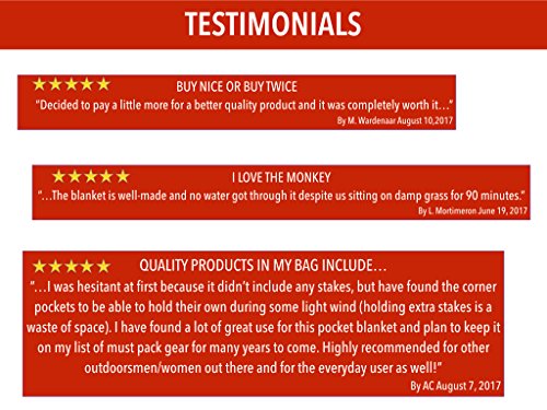 Realizzato per la tasca aperta: la nostra coperta rende un regalo perfetto per chiunque ami semplicemente essere fuori. Esso è stato realizzato per resistere a qualsiasi tipo di terreno e creato per beachs, parchi, campeggio, trekking, arrampicate, abbronzatura, eventi sportivi, amphitheaters e tutte le cose in all' aria aperta.