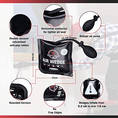 MIGHTYWEDGE Kit di 5 pezzi per pompa ad aria con cuneo, per sollevatore gonfiabile, per auto, porte, finestre, doccia, 2 spessori, 2 barre a leva e 1 borsa con coulisse, 16,5 cm x 15 cm, capacità