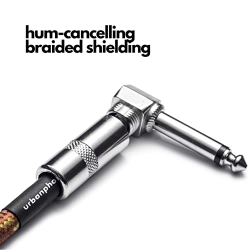 # 1 Miglior Cavo Patch per Chitarra e Basso - 23cm Cavetto per Strumenti Musicali - per Pedaliera Effetti - Connettori 1/4" a Angolo Retto Maschio - Tessuto di Tweed Colore Rame (6 Pz) di Urbanphonics